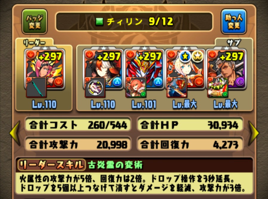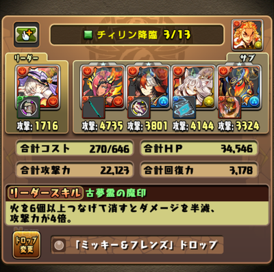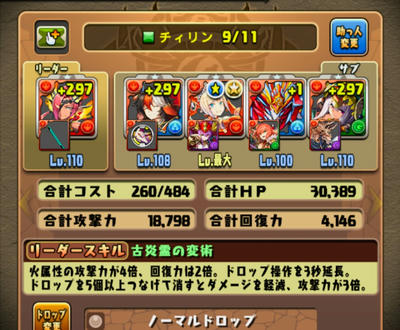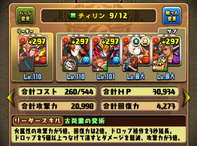 チィリンは、セト(エンハ&変換)➡ソニア(2色変換)➡士郎装備(コンボ加算)で、貫通ワンパン。但し壊滅級ではない(SARA頼みなのでキツいかも)。