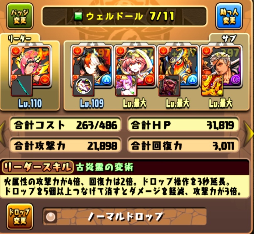 ウェルドールのスキル遅延5対策で、ボス戦に使用する子にはアシストを付加。