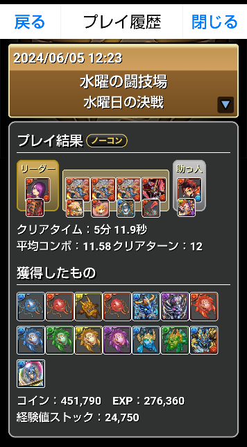 チュチュのアシストも、消せないドロップが盤面にないと使えない事が判明し、慌てて楊の剣に変更