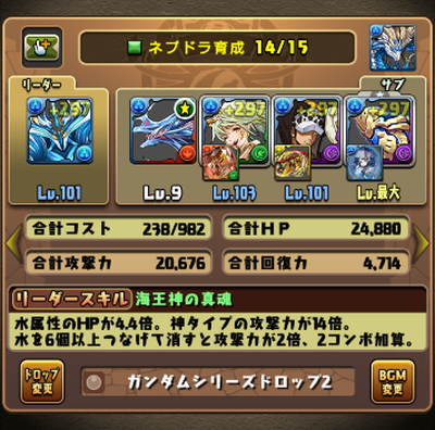 更に、必要ではないけど(ネプドラ自体使えない)スキルレベル上げ用(中々上がらない)本体入りのパーティーがこちら。