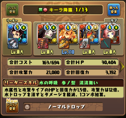 炭治郞とねずこが無効貫通持ちなので、自フレ炭治郞がスキルを使い続けて盤面の火ドロが9つになれば、途中もBOSSも貫通突破可能。